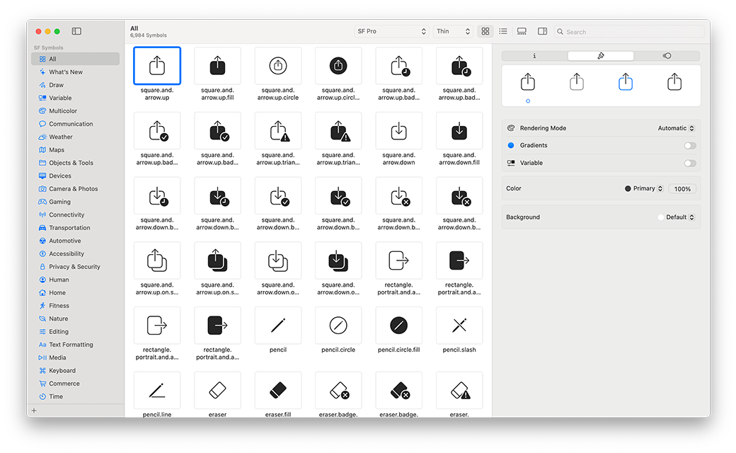 SF Symbols 7 is a library of over 6,900 symbols designed to integrate seamlessly with San Francisco, the system font for Apple platforms. Symbols come in nine weights and three scales, automatically align with text, and can be exported and edited using vector graphics tools to create custom symbols with shared design characteristics and accessibility features. SF Symbols 7 introduces Draw animations and variable rendering, enhanced Magic Replace, gradients, and hundreds of new symbols.