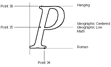 Baseline positions can be included representing a Roman baseline, an ideographic baseline (either centered or lowered), a hanging baseline, and a mathematical baseline.