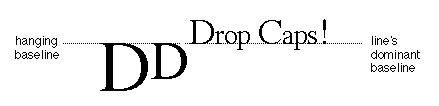 The first step is to resolve all baselines to the line of text's dominant baseline (which, in this example is Roman). In the next figure, the first two uppercase D glyphs are now hanging from the hanging baseline, which is aligned to the main text's baseline.