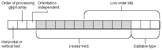 | 0x2000 | If set to 1, this subtable should be applied irrespective of the state of the 0x8000 bit. This allows you to make subtables that will be executed irrespective of the orientation of the text. If this bit is 0, the 0x8000 bit is interpreted as described above. Support for this bit is available starting with GX 1.1; earlier versions of the software will ignore it. |