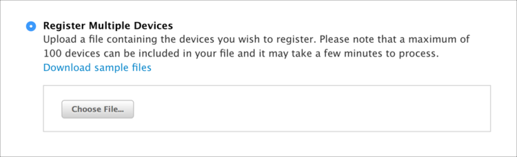 2. Under Register multiple devices, click Choose File.