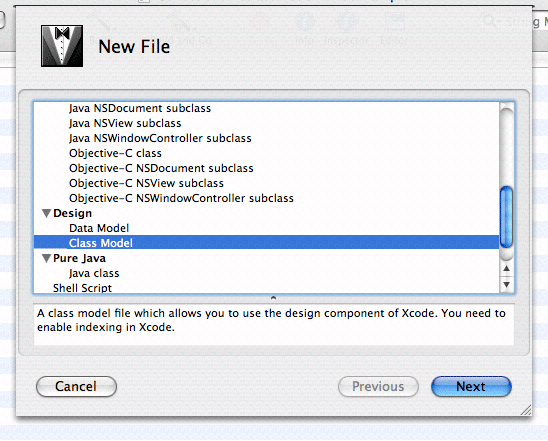 The Xcode design tools offer a wide range of options and features to ease your workflow, from automatic page creation and deletion in the diagram view, to multiple selection editing in the browser. In addition, it is possible to add to the toolbar shortcuts for actions such as Add Entity, Attribute, and Quick Model.