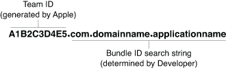An app ID is a string containing two parts, a team ID and a bundle ID search string, with a period (.) separating the two parts. Each part of an app ID has different and important uses for your app.
