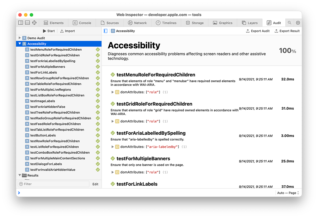 Audit. Preform audits against a web page to certify that common code and accessibility errors are addressed. Confirm that a web page follows design guidelines and specifications of modern web pages.